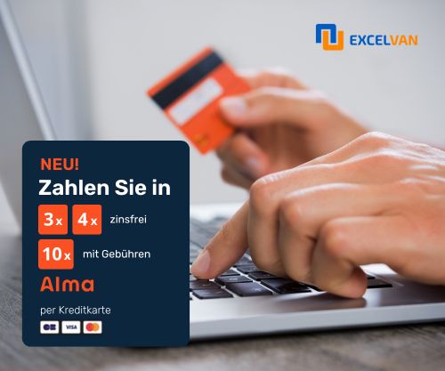 - Der Mindestbestellwert für den Zugang zu diesem Service beträgt 600€ inkl. MwSt. für Zahlungen in 3x und 4x ohne Gebühren und 1000€ inkl. MwSt. für Zahlungen in 10x.