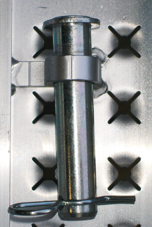 2 Sicherungen werden standardmäßig mitgeliefert: Keil (für Bordwände) und Bolzen (in seiner Aufbewahrung)